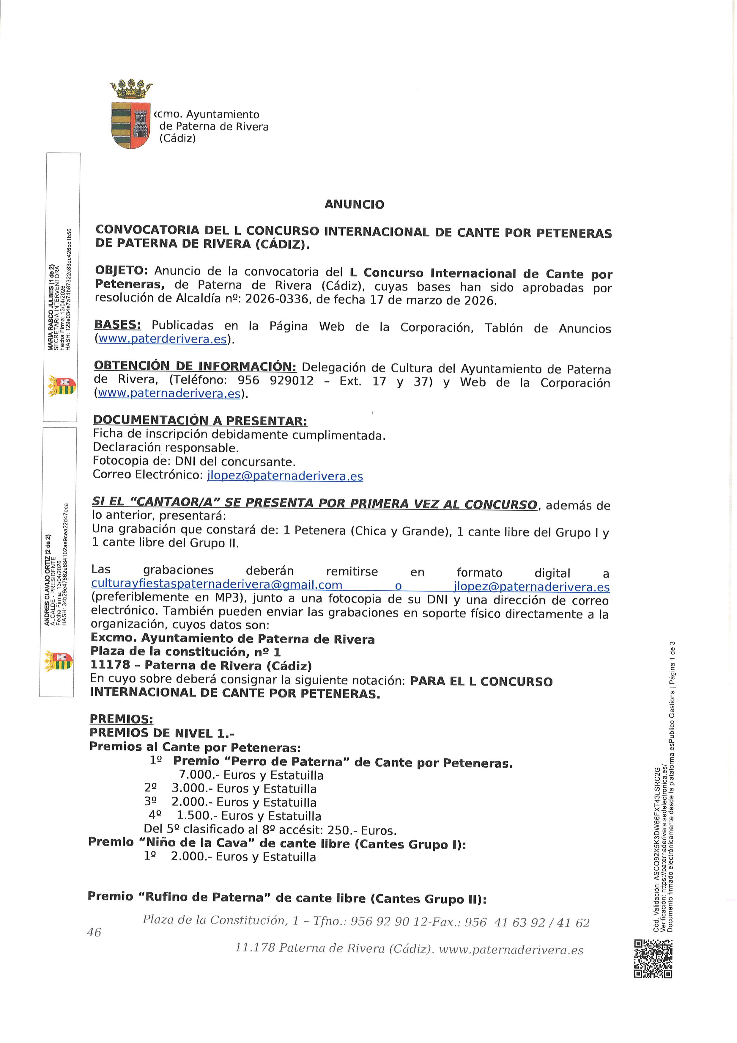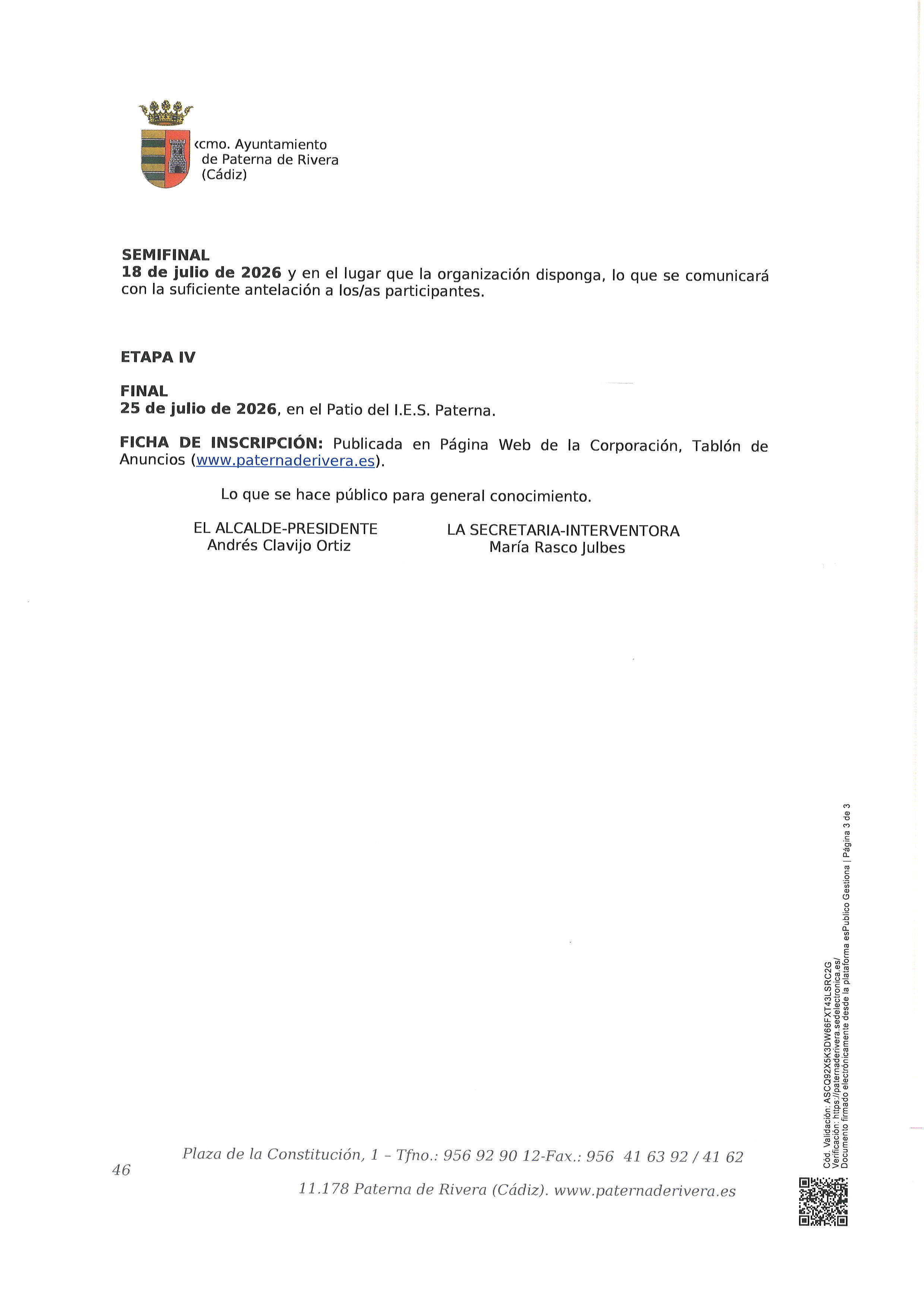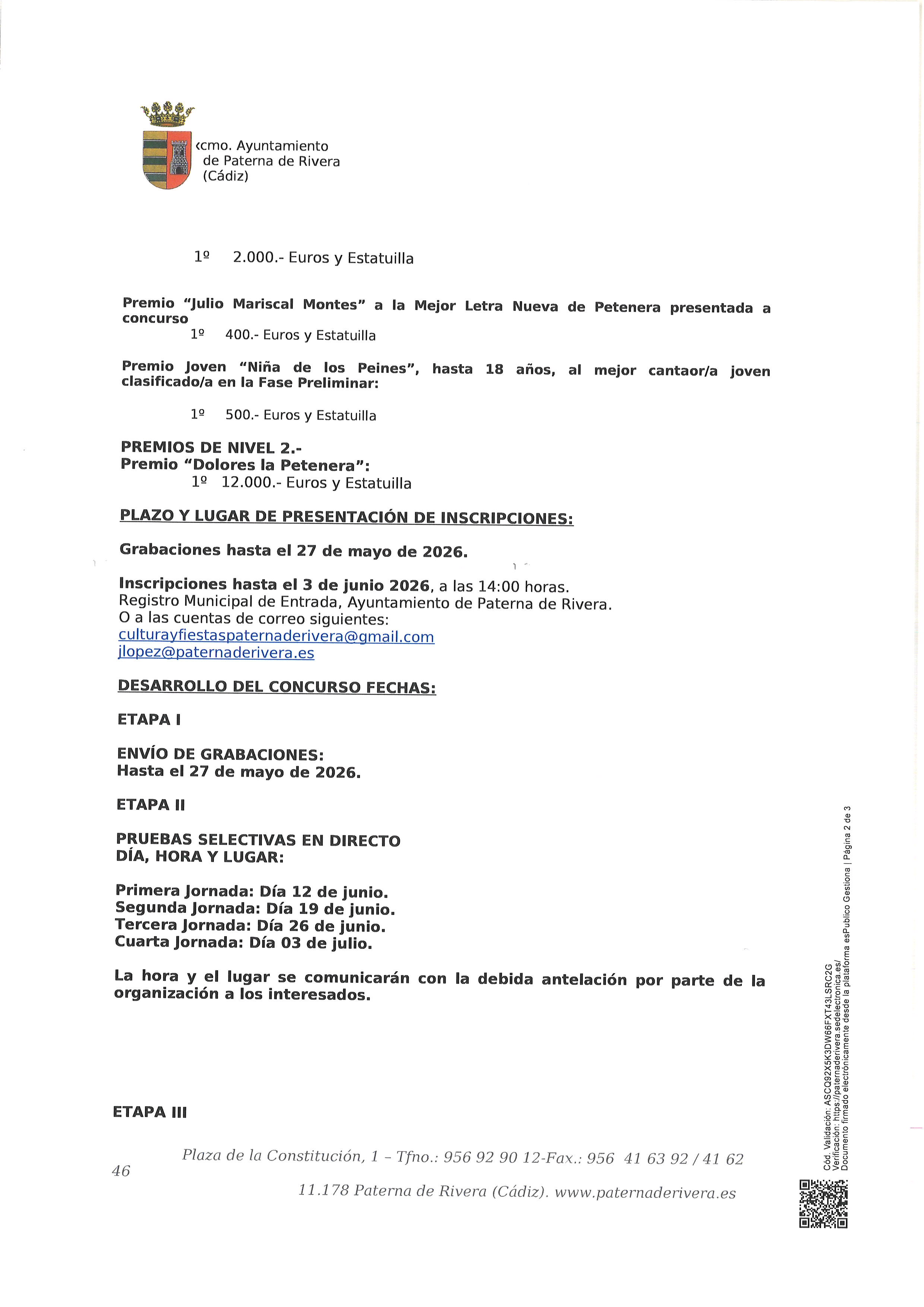 APROBADAS LAS BASES DE LOS CONCURSOS DEL CARNAVAL DE PATERNA DE RIVERA, 2026 BASES 28 CABALGATA DISFRACES 2026BASES ANTIFAZ DE ORO 2026INSCRIPCIONES CONCURSOS CARNAVAL 2026